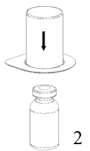 Fjern forsiktig beskyttelseshettene fra hetteglassene med pulver og oppløsningsvæske. Vask gummiproppene på begge hetteglassene med en av vaskeserviettene og la proppene tørke. Oppløsningsvæsken kan nå overføres til pulveret ved hjelp av det vedlagte administrasjonssettet (Mix2Vial). Følg instruksjonene som beskrevet under: