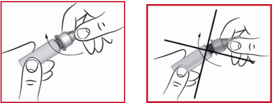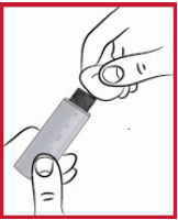 (b) Ta pennen ut av esken og fjern den ytre hylsen (se 3).