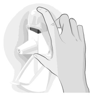 Hvordan tømme pulveret ut av munnstykket Dersom du ved uhell utløser inhalatoren eller du har utløst den mer enn én gang, eller hvis du puster rett inn i den, skal du tømme munnstykket.