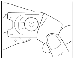Ta av plastemballasjen fra adapteren ved å holde hetteglasset med én hånd, trykk på sidene på adapteremballasjen med den andre hånden, og løft deretter emballasjen opp. Sørg for at adapteren ikke løsner fra hetteglasset.
