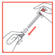 1. Fjern applikatoren fra pakningen og trekk ut stempelet og den røde låsen fra hovedenheten.