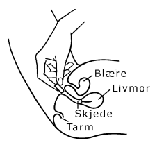 Vaginaltabletten føres inn i skjeden med fingrene.