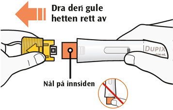 Ikke fjern den gule hetten før du er klar til å injisere.