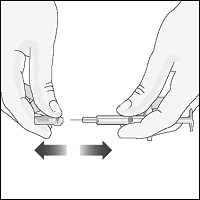 Når du fjerner kanylehetten, kan det være en dråpe med væske ytterst på kanylen. Dette er normalt. Ikke ta på kanylen eller la den være nær noen overflate. Ikke ta på eller slå på stempelet. Det kan gjøre at væske lekker ut.