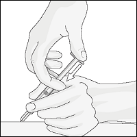3. Når det rengjorte hudområdet har tørket, klem og hold det fast med en hånd. Med den andre hånden holdes sprøyten som en blyant.