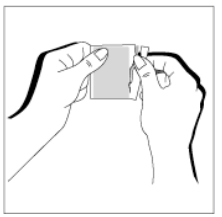 Hvert plaster er pakket hver for seg i beskyttende poser. Åpne posen langs perforeringen og ta ut plasteret (unngå å bruke saks for å åpne posen da det kan skade plasteret). Plasteret festes så umiddelbart på huden. |