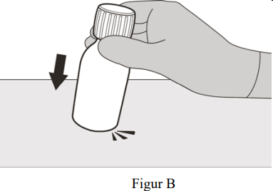 Steg 1 Dunk forsiktig på bunnen av flasken for å løsne pulveret (se figur B). |