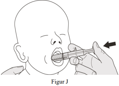 Steg B2 Sjekk at det ikke er noe legemiddel igjen i den orale sprøyten (se figur K). |