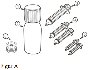 Pakningen inneholder et hefte med "Instruksjoner for bruk". Den viser deg hvordan du skal trekke ut dosen ved å bruke den gjenbrukbare oralsprøyten som du har fått. Du kan ta legemidlet: