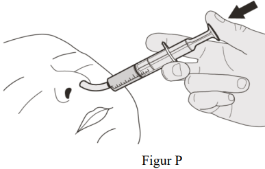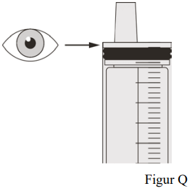 Steg D2 Sjekk at det ikke er noe legemiddel igjen i den orale sprøyten (se Figur Q). |