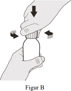 Steg A1 Fjern korken ved å trykke den ned og deretter skru den til venstre (mot klokken) (se figur B). Ikke kast korken. |