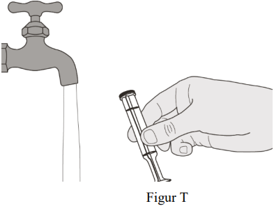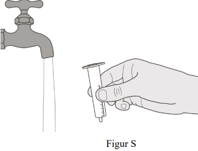 Skyll den orale sprøytesylinderen godt under rent vann (se figur S).