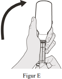 Steg A4 Snu forsiktig flasken på hodet med sprøytetuppen godt innsatt i flaskeadapteren (se figur E). |
