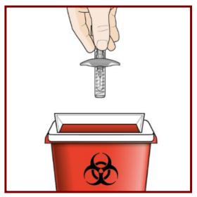 Putt den brukte ferdigfylte sprøyten i en punkteringssikker kanylebeholder umiddelbart etter bruk.