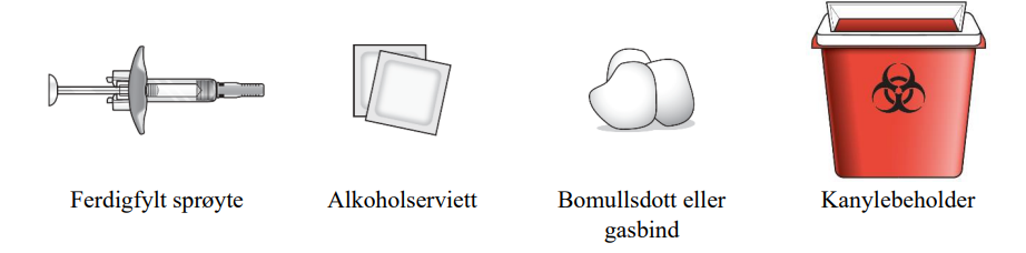 Dersom noe av det ovennevnte skjer, kast sprøyten i en punkteringssikker beholder beregnet for å kaste kanyler og bruk en ny ferdigfylt sprøyte.