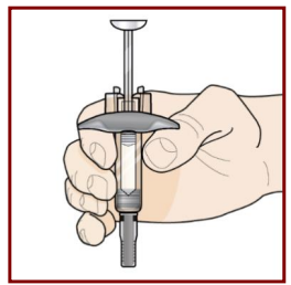 Hold på sprøytekroppen (ikke i stemplet) for å fjerne den ferdigfylte sprøyten.