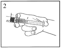 6) Koble sprøyten til IV-tilgangen. Skyv stempelet sakte for å injisere ønsket volum.