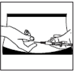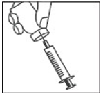1. Ta hetten av den ferdigfylte sprøyten, og fest rekonstitueringsnålen (lang nål) til sprøyten.