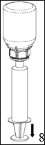 Ta tak i den delen av Mix2Vial-settet der hetteglasset med Haemate er festet med den ene hånden, og den delen av Mix2Vial-settet der hetteglasset med oppløsningsvæsken er festet med den andre hånden, og skru settet forsiktig fra hverandre (i to deler) for å unngå skumdannelse. Kast hetteglasset det har vært oppløsningsvæske i inkludert den blå Mix2Vial-delen.