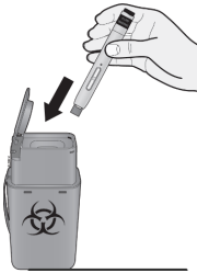 Legg den brukte pennen i en avfallsbeholder for skarpe gjenstander umiddelbart etter bruk. Spør legen din eller apoteket om hvor det skal kastes. Det kan finnes lokale retningslinjer for håndtering av denne typen avfall.