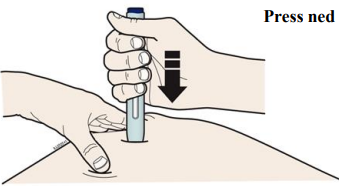 Fjern tommelen fra knappen, men fortsett å presse ned i huden. Injeksjonen kan ta omtrent 15 sekunder.