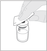 4. Tørk av toppen på hetteglasset med en av de desinfiserende serviettene (F) som følger med i pakningen og la det lufttørke.