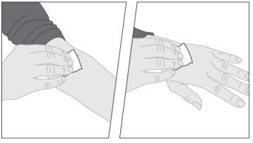 2. Fest et turniké (stasebånd) om ønskelig, og klargjør injeksjonsstedet ved å rengjøre huden med den andre desinfiserende servietten som følger med i pakningen.