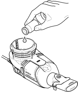 7. Hell innholdet i hetteglasset med ARIKAYCE liposomal ned i legemiddelreservoaret i Lamira nebulisatorhåndsett (figur 5).