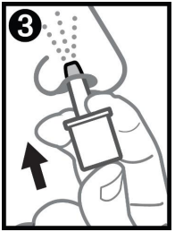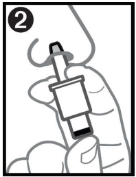 Advarsel: Ikke trykk på stemplet før innføring i nesen, da vil dosen i endosebeholderen gå tapt.