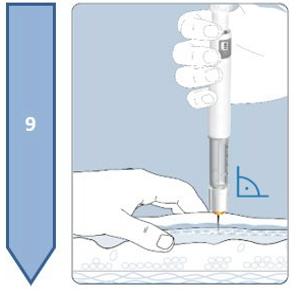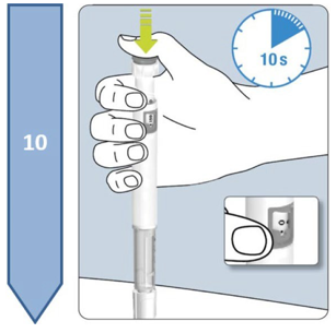 Tell sakte til 10. Ikke løft eller beveg pennen under injeksjonen.