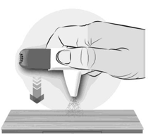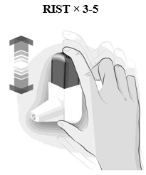Hvordan tømme pulveret ut av munnstykket Dersom du ved uhell utløser inhalatoren eller du har utløst den mer enn én gang, eller hvis du puster rett inn i den, skal du tømme munnstykket.