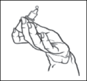 Trykk forsiktig i bunnen av flasken slik at én dråpe Cilox frigjøres av gangen.