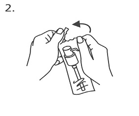 Denne oppløsningen kastes. Neste gang doseringspumpen trykkes helt ned (tilsvarende et pumpetrykk), blir riktig dose levert (figur 6).