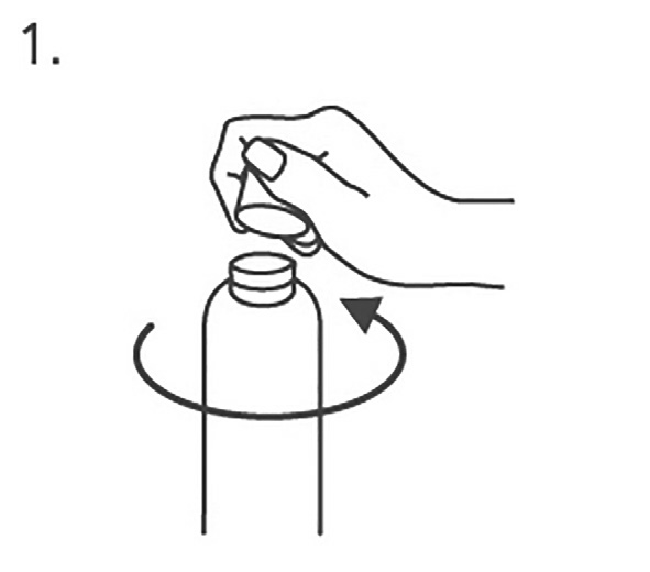 Oppløsningen må ikke helles eller pumpes direkte i munnen fra flasken eller pumpen.