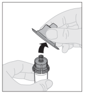 14. Sørg for at sprøytestempelet er presset helt inn og vend hetteglasset opp-ned. Trekk stempelstangen langsomt ut for å trekke opp all oppløsningen gjennom hetteglassadapteren og inn i sprøyten.