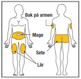 Lege, apotek eller sykepleier kan hjelpe deg å velge det injeksjonsstedet som passer best for deg.
