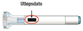 Pennen inneholder glassdeler. Håndter den forsiktig. Ikke bruk den dersom du mister den på en hard overflate. Bruk en ny penn for injeksjonen din.