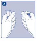 Ikke berør sprøytetuppen. Hvis du berører sprøytetuppen, kan bakterier overføres fra fingrene dine.