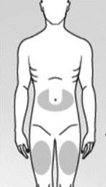 Du eller barnet skal sitte eller ligge ved injisering under huden. Hvis du injiserer deg selv, skal du finne en komfortabel sittestilling der du ser magen din (se figur 10).