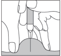 Lag en hudfold mellom tommelen og pekefingeren med én hånd. Med den andre hånden holder du sprøyten som en penn. Dette er injeksjonsstedet.