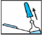 Sett kanylebeskyttelsen av plast mot en hard, stødig overflate, og sving sprøytesylinderen opp mot nålen med én hånd slik at nålen presses inn i kanylebeskyttelsen, der den låses på plass. Fortsett med å bøye nålen til sprøyten overskrider 45 graders vinkel med den flate overflaten, slik at den blir permanent ubrukelig.