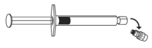 Vri plastdekslet på den manipuleringssikre lukkeanordningen på sprøytens luerkobling for å fjerne dekslet med den tilkoblede hetten med gummitupp (se Figur 1).