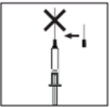 Trykk den korte kanylen bestemt ned på sprøytesylinderen, og vri den litt for å sikre at den er skikkelig skrudd på og tett forseglet.