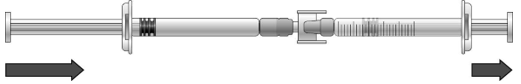 1) Begynn å overføre ikatibantoppløsningen ved å skyve inn stemplet på den ferdigfylte sprøyten (helt til venstre på illustrasjonen nedenfor).