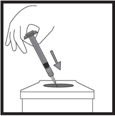 Legg fra deg den ferdigfylte sprøyten etter at du har skrudd av hetten.
