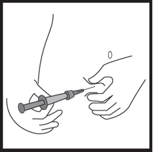 Hold sprøyten i den ene hånden mellom to fingre, med tommelen din på stemplet.