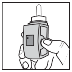 Trykk på og slipp opp igjen den hvite knappen på siden av nesesprayen (det blinkende låsesymbolet forsvinner).