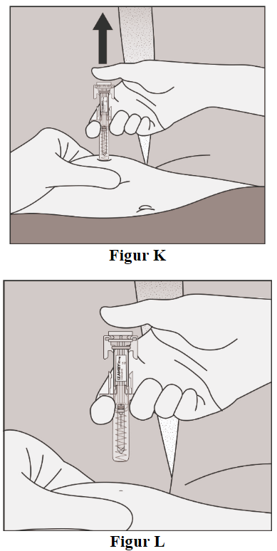 Løft deretter sprøyten bort fra huden (figur L).