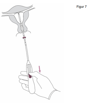 6. Før innføringshylsen forsiktig videre mot fundus i uterus inntil måleringen berører cervix. Jaydess er nå plassert ved fundus.
