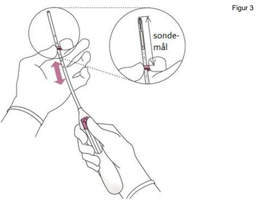 3. Mens glideknappen holdes i ytterste posisjon, plasseres oversiden av måleringen slik at lengden tilsvarer sondemålet av uterus.